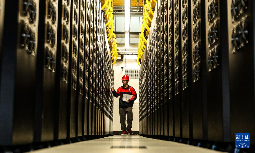 工作人员在贵安超算中心数据机房内工作。新华社记者 刘续 摄