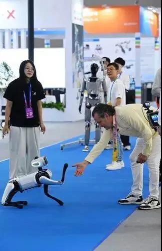 整个展馆中最引人注意的,莫过于机器人“格斗赛”。在宇树机器人的展台中,专门设置了一个小型“格斗场”,用于戴着格斗拳套的机器人进行现场“比武”。别看这些机器人动作有些生硬还笨拙,但“打起来”还是有模有样,什么上勾、侧踢、直拳等颇有真人的感觉。![]()