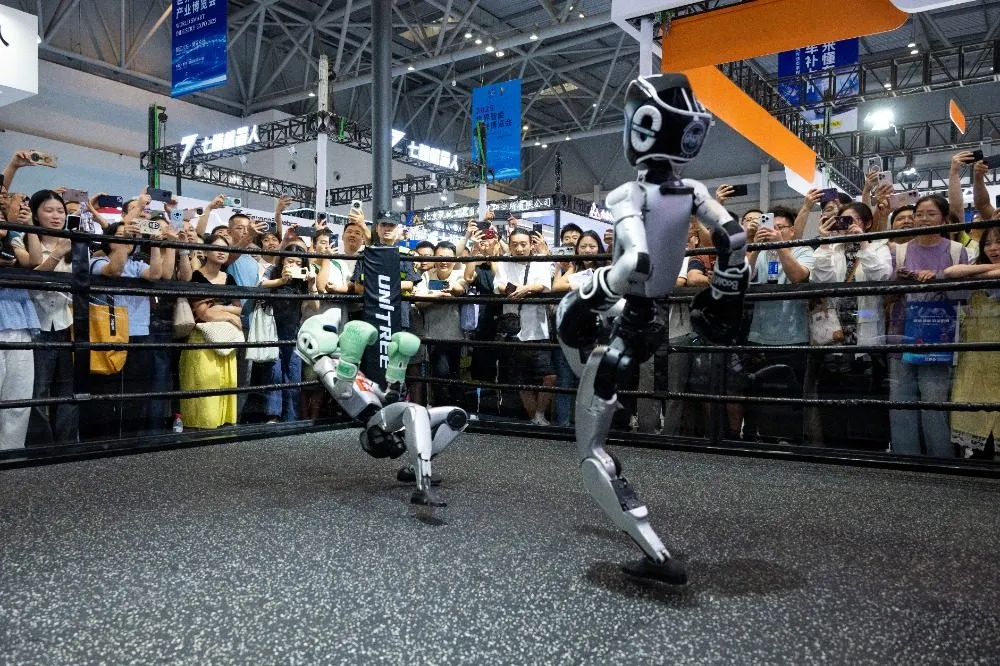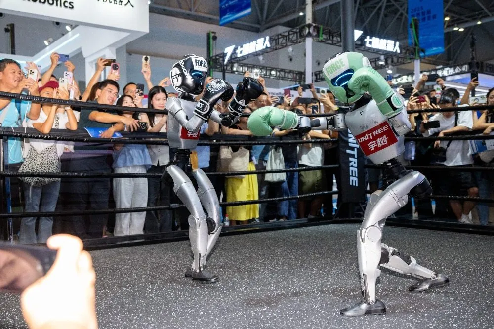 9月5日,重庆国际博览中心,宇树科技带来的武术机器人在格斗大赛上“大打出手”。记者 崔力 摄