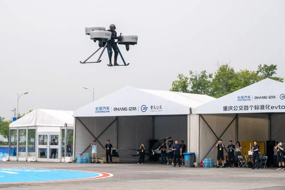9月5日,重庆国际博览中心,智博会上长安汽车推出的飞行背包表演。记者 崔力 摄