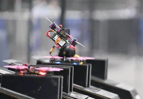 9月5日,重庆国际博览中心,2025第二届重庆无人机竞速赛现场,无人机起飞。首席记者 龙帆 摄