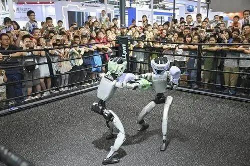 “你别看这个机器人现在还有点笨拙,再过几年,让它们像真人一样进行拳击比赛,可能会变成现实。”一位在观看宇树机器人“格斗”的市民,一边喝彩,一边对家人感叹。