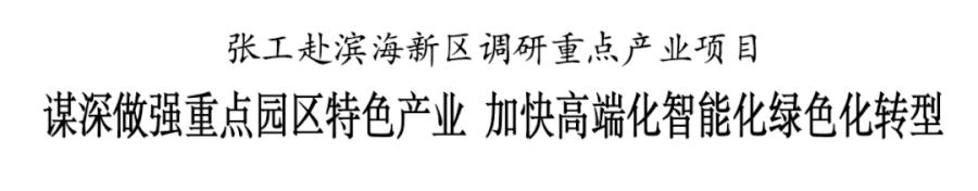 张工赴滨海新区调研重点产业项目,谋深做强重点园区特色产业,加快高端化智能化绿色化转型