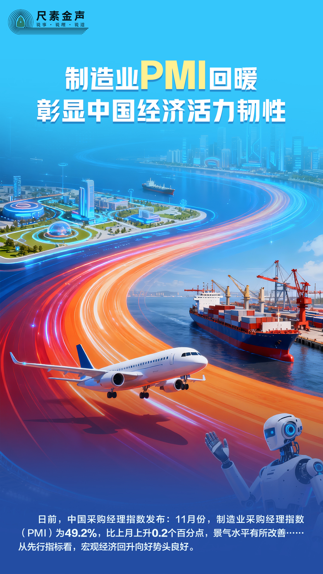 日前,中国采购经理指数发布:11月份,制造业采购经理指数(PMI)为49.2%,比上月上升0.2个百分点,景气水平有所改善……从先行指标看,宏观经济回升向好势头良好。![]()
