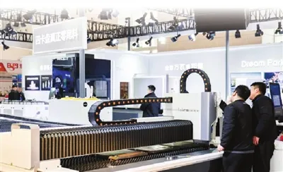 在第21届天津工博会上,参展企业展出大功率激光切割机。