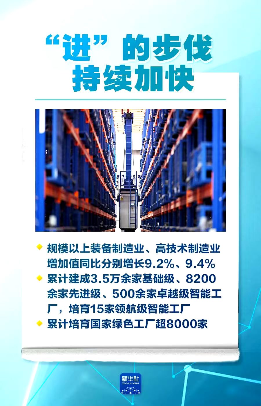 数据显示,全年规模以上装备制造业、高技术制造业增加值同比分别增长9.2%、9.4%。制造业数智化转型扎实推进,累计建成3.5万余家基础级、8200余家先进级、500余家卓越级、15家领航级智能工厂。累计培育国家绿色工厂超8000家,规模以上工业单位增加值能耗、水耗不断降低。