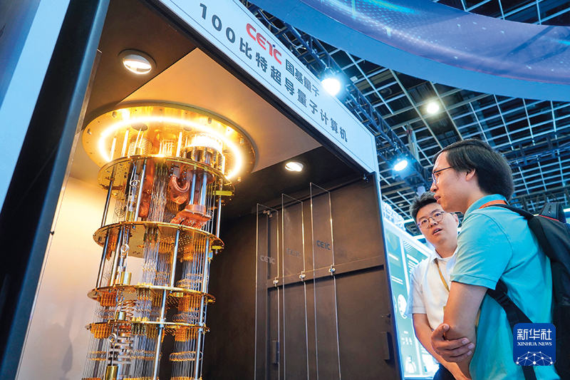 在南京举办的2025江苏产学研合作对接大会上,工作人员向游客讲解100比特超导量子计算机(2025年9月11日摄)新华社发(刘臻睿摄)