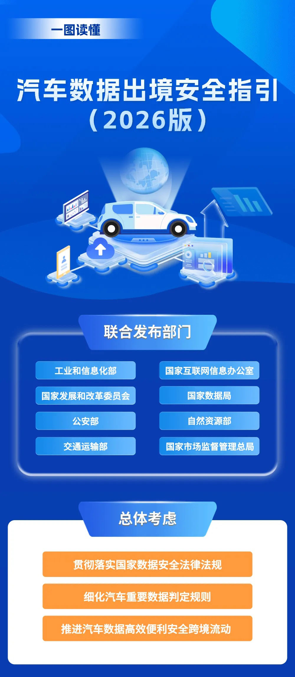 点击查阅“《工业和信息化部等八部门关于印发<汽车数据出境安全指引(2026版)>的通知》”。