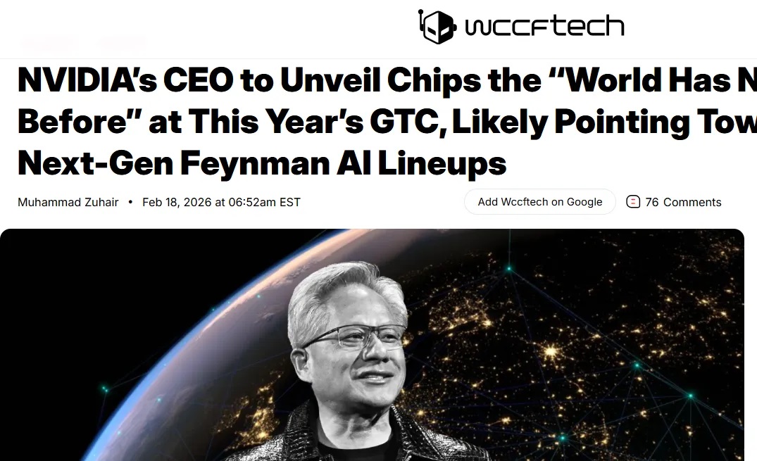 环球网消息,2月19日消息,据外媒wccftech报道,英伟达首席执行官黄仁勋在接受媒体采访时,对即将到来的GTC 2026大会进行预热,明确表示将在会上揭晓“世界前所未见”的全新芯片,引发业界广泛关注。作为AI芯片领域的领军者,英伟达此次重磅预告,被认为将进一步巩固其在AI基础设施领域的领先地位。![]()