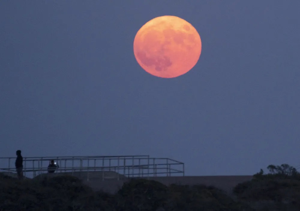 ▲这是2023年8月30日在美国旧金山金门大桥附近拍摄的“超级月亮”。新华社发(李建国摄)