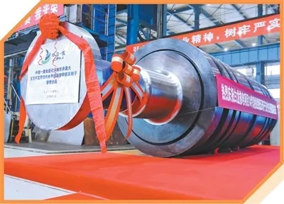 中国一重研制的国产首支自主化标准百万等级常规岛整锻低压转子锻件。人民视觉李聪摄